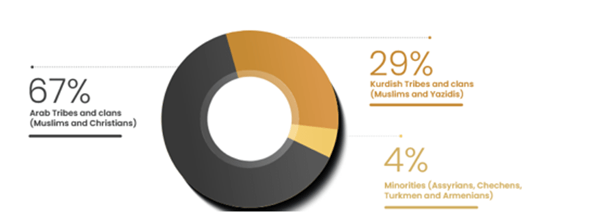 Despite common misconceptions, neither Hasakah governate as a whole, nor most of its districts, nor its capital Hasakah city, are Kurdish majority. Hasakah governate is majority Arab, but its 30 percent Kurdish population is the largest of any governate in Syria (apologies for the language of “tribes and clans” in the graphic):
