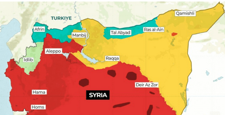 Meanwhile, the US-SDF alliance drove ISIS from Arab-majority Manbij just west of Kobani in mid-2016, then Raqqa in 2017 and Deir Ezzor in 2018 (dividing the latter with the Assad regime forces finally coming from the west). But in the northeast, the SDF suffered a huge setback in 2018 when the Turkish army invaded Kurdish Afrin, driving out some 130,000 Kurds, who ended up, ironically, in the homes of those earlier expelled by the SDF from Tel Rifaat; and the next year, Turkey invaded part of the northeast, and seized the cities of Tal Abyad and Ras al-Ain, with their substantial (though not majority) Kurdish populations, driving out some 200,000 Kurds.