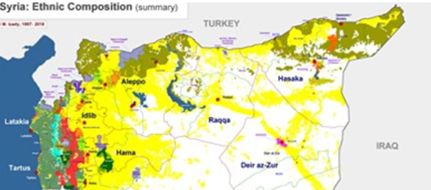 Now that that phase is over, we return to the start: the regions the Syrian army did not march into are regions either of Kurdish majority or of large Kurdish concentrations mixed with other groups. But as we saw at the start, even these regions are not contiguous, and even the largest region of Kurdish concentration, Hasakah governate, is neither Kurdish majority as a whole, and even the Kurdish majority cities, towns and regions are interspersed with non-Kurdish regions. Just what can ‘Kurdish autonomy’, or Kurdish self-determination, in any territorial sense, mean then?