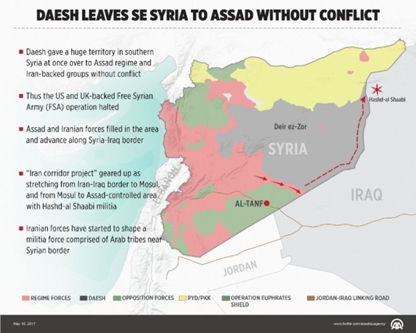 Per the account given by the pro-Assad Al-Akhbar newspaper, the US officials demanded the withdrawal of Iranian forces from southern Syria, an issue already being negotiated between Israel and Russia as part of an agreement to facilitate the return of Assad’s forces to the UN armistice line between Syria and the Israeli-occupied Syrian Golan, and their defeat of the Free Syrian Army (FSA) Southern Front rebels. The Americans also reportedly asked for a role in the oil business in eastern Syria.
