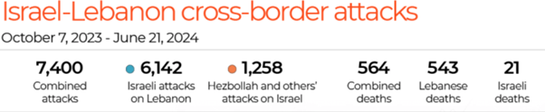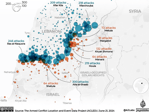 Source: https://www.aljazeera.com/news/2024/6/27/mapping-7400-cross-border-attacks-between-israel-and-lebanon