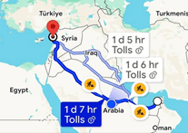 IMEC through Syria rather than Israel? Left: the original IMEC route; centre and right: road and rail routes from Gulf to Turkey and the Mediterranean through Syria.